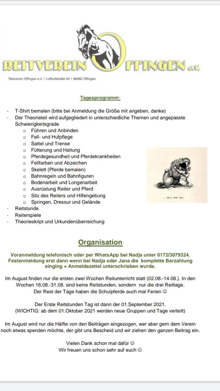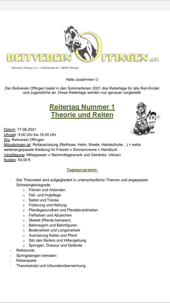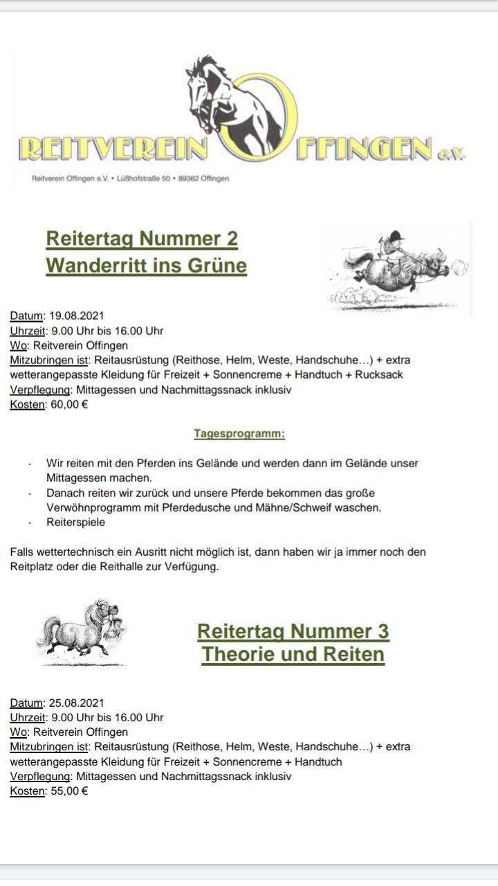 Sommerferienprogramm - Reitertage beim RVO
