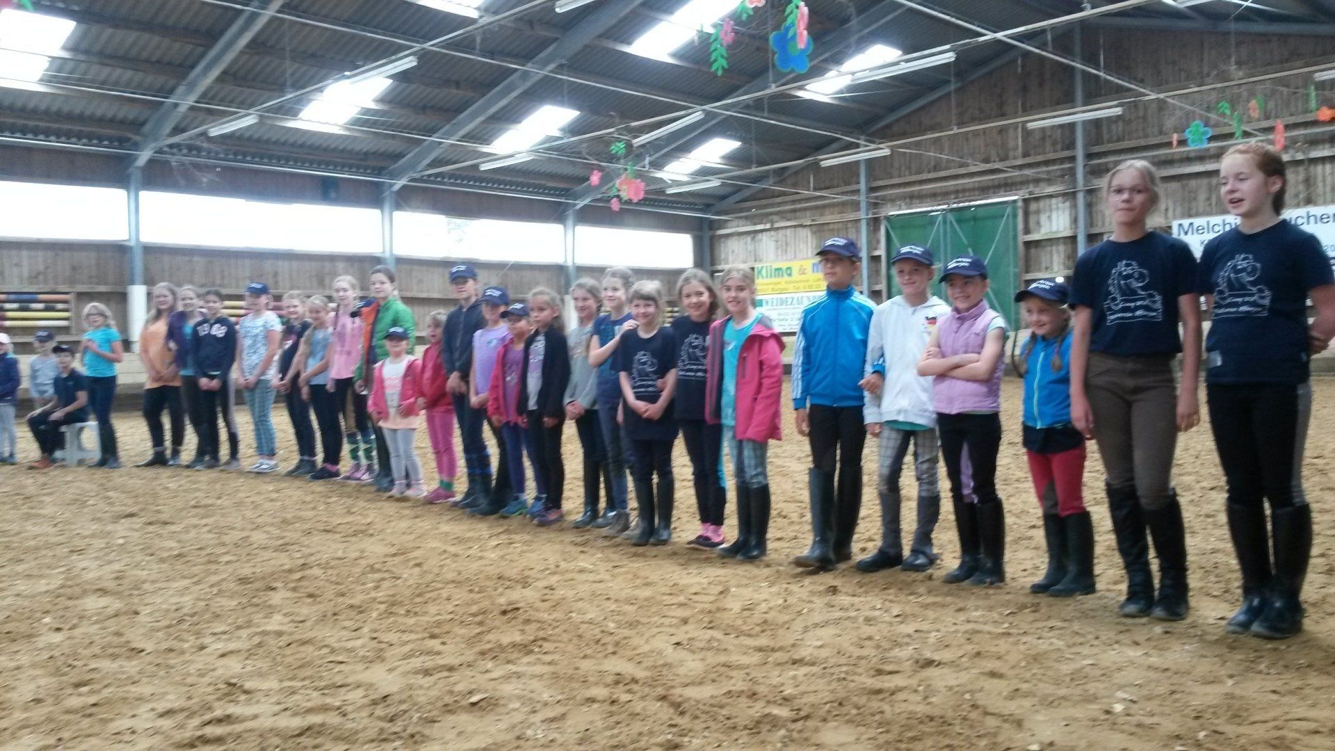 Vom 01.-04.08.2016 fand das jährliche Reiterlager auf der Reitanlage in Offingen statt. Die stattliche Teilnehmerzahl von 32 zeugt davon, dass die erste Augustwoche bereits bei vielen Reitschüler/innen für dieses Ereignis fest verplant ist. Das liegt nicht zuletzt am abwechslungsreichen Programm, was neben den Voltigier-, Longen- und Reitstunden auch geführte Ausritte, eine Kutschfahrt, Ponystyling, Geschicklichkeitsspiele und Basteleien beinhaltete. Den krönenden Abschluss bildete wie jedes Jahr der Grillabend mit den Eltern und Verwandten und das anschließende Übernachtem im Strohlager. Alle waren sich deshalb einig: Etwas Schöneres gibt es nicht!